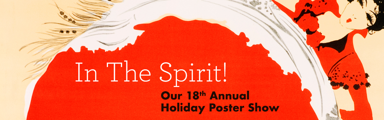 We proudly present our 18th annual holiday poster show In The Spirit!, an exhibition of original vintage posters that celebrate the mirth and indulgence of the season. The show features over 50 original vintage posters advertising entertainment, fine foods, exotic travel, luxury products, and more.