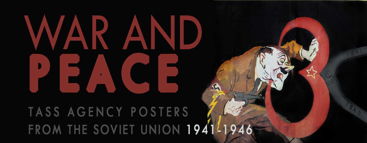 International Poster Gallery is proud to present War and Peace: TASS Agency Posters from the Soviet Union 1941 - 1946, a one-week only show and sale of extremely rare News Agency "window" posters from the Soviet Union. Posted daily in shop windows of Moscow after the German invasion in 1941, TASS posters were intended to rally support for the war, and later the post-war, effort. The gallery is offering its complete collection of 44 large format, intricately hand-stenciled TASS posters, many never before exhibited in the U.S. View all panels.